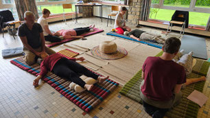 Durant le séjour, vous aurez l'occasion de vous initier au Massage japonais habillé Shiatsu. celui-ci se pratiquant sur futon au sol au travers des vêtements. Lors du week-end, vous apprendrez une séquence que vous pourrez ensuite pratiquer de retour chez vous.